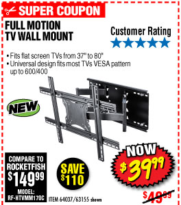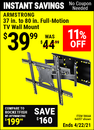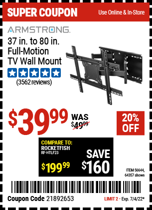 Armstrong 37 In To 80 In Full Motion Tv Wall Mount For 39 99 Harbor Freight Coupons